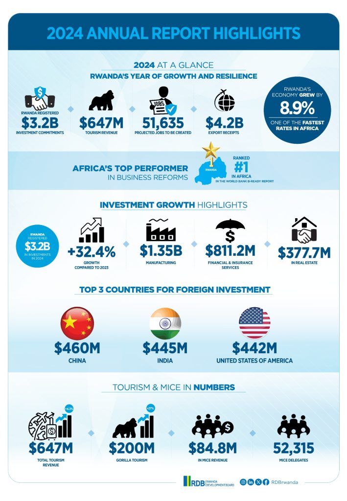 The Rwanda Development Board (RDB) released its 2024 Annual Report, spotlighting a year marked by significant economic progress, resilience, and…